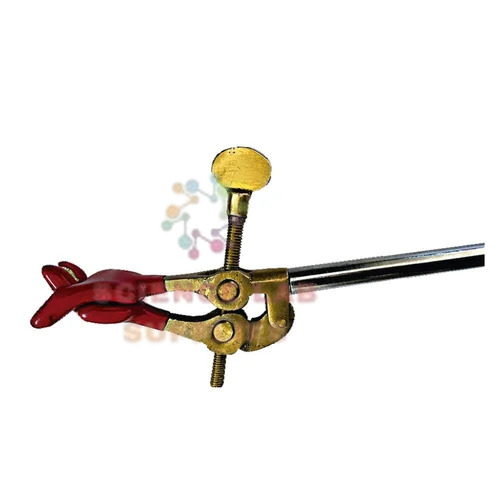 Made of pressure die cast zinc alloy, all nickel plated body, double "v" shaped cork lined or pvc covered jaw clamp fitted to 6 inches or 9 inches long mild steel rod. Jaw is double adjustable type with the help of double mild steel screw keys accepts objects up to 65 mm diameter.