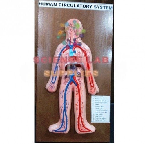 This model is dissectible in 4 parts showing the position of lungs, diaphragm and heart. Mounted on a base, appropriately coloured and numbered with key card.